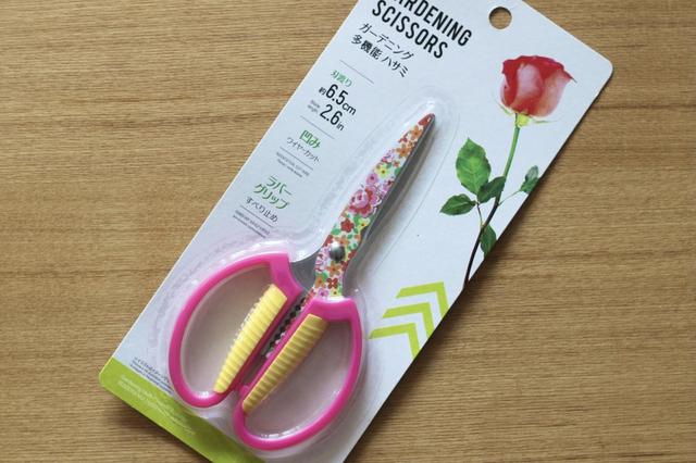 ガーデニングや、花瓶に花を生けるときに使える専用バサミも100円で入手可能!刃にも模様が描かれていてかわいいです。