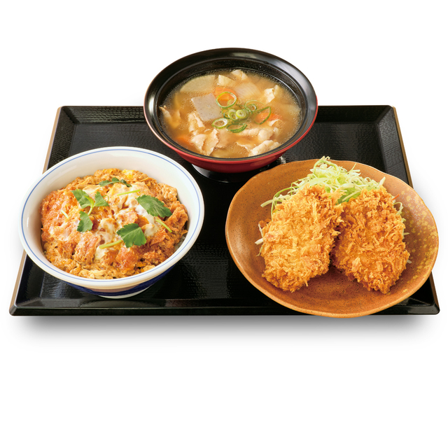 サクサクやわらかで、ボリューム感のあるとんかつや、サクッと食べやすいヒレカツに、旨味が口いっぱいに広がるカツ丼の両方を一度に味わえる、かつやの"王道"です。
