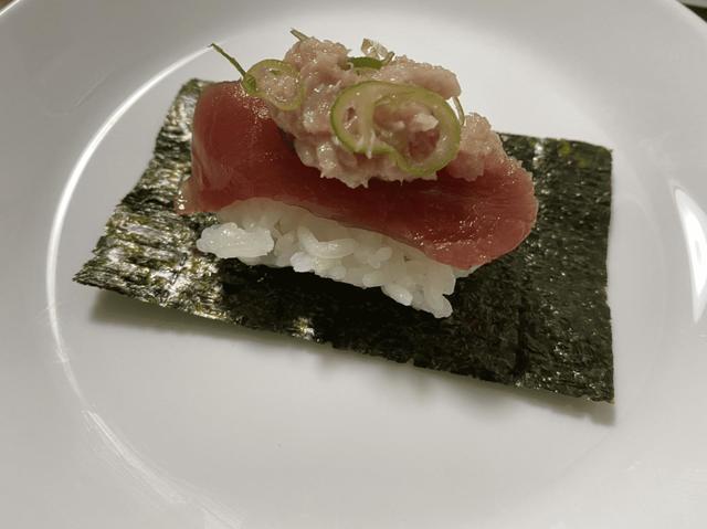 まぐろのしっかりとした食感とねぎまぐろの柔らかい食感が組み合わさり、口の中で旨味が広がりました。