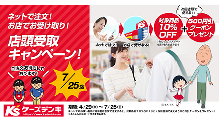 インターネット経由で注文し、配送ではなく、営業中の店舗で受け取ると付与するポイントを増量したり、一定数のポイントをプレゼントしたりするキャンペーンは他の家電量販店でも実施しているが、ポイントサービスを導入していないケーズデンキは販売価格から割り引く。もう一つの特典、500円引きクーポンは、店舗で販売している単品3000円以上の商品に限り利用でき、商品券類、携帯電話、リサイクル費用、工事代、部品代、修理代、配送代金が利用不可。