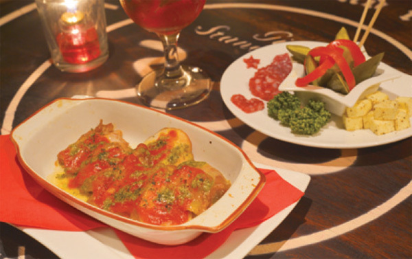 「自家製ピクルス」(奥)と「イタリアンチキン」(手前)。どちらも価格を越えたクオリティ 拡大画像表示