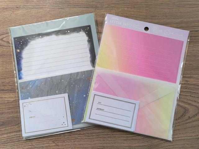 ふだんから書く習慣がない人は自宅にレターセットがないと思いますが、そんなときはキャンドゥをのぞいてみてください。子ども向けのデザインが多いかと思いきや、大人が使いたくなるデザインのものもたくさん見つかりますよ。