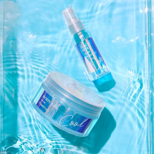 ひんやりしながら保湿できる優れもののクールボディジェルです。お風呂あがりに火照った体をさわやかな香りとともにクールダウンしてくれます。たっぷり使える200ml。ブルー(サボンの香り)、ピンク(ピンクグレープフルーツの香り)で価格は1,000円(税込)です。