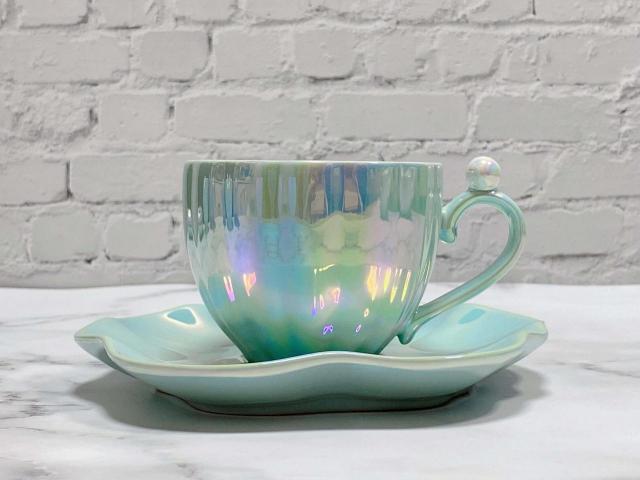 カップの持ち手にちょこんとついたパールはもちろん、貝殻のような形のソーサーもかわいいカップ&ソーサー。