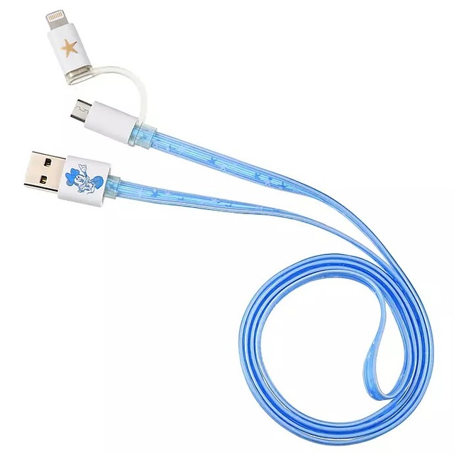 大小の星がプリントされたiPhone/iPad/iPod用2in1 USBコードは、なんと光るんです!!