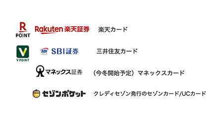 国内5大オンライン証券とよばれる残り3社のうち、マネックス証券は、提携カードの「マネックスカード」を5月19日に発行開始し、同様の投信積立カード決済サービスを今年冬以降に開始予定。auカブコム証券も、既にPontaポイントで投資信託を購入できるサービスを展開しているので、将来的に各社とも「クレカ積立」に対応すると予想するが、今年夏の時点では、VポイントがたまるSBI証券×三井住友カード、楽天ポイントがたまる楽天証券×楽天カードのいずれか、または両方が選択肢となる。
