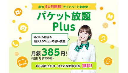 料金は、10GB以上のコースが無料、10GB未満のコースが月額385円。また、サービス開始にあわせて、パケット放題 Plusのオプション料金が最大3カ月無料になるキャンペーンを実施する。