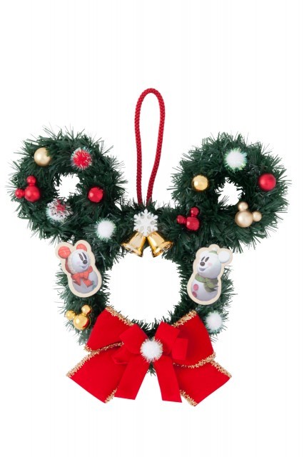 ミッキーシェイプのリースにミッキーマークの飾り付けがついています。
