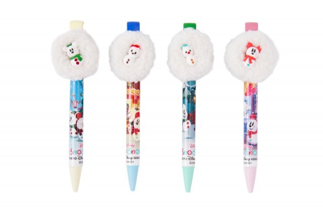 スノーミッキー、スノーミニー、スノーチップ、スノーデールのチャームがついたボールペン4本セット。