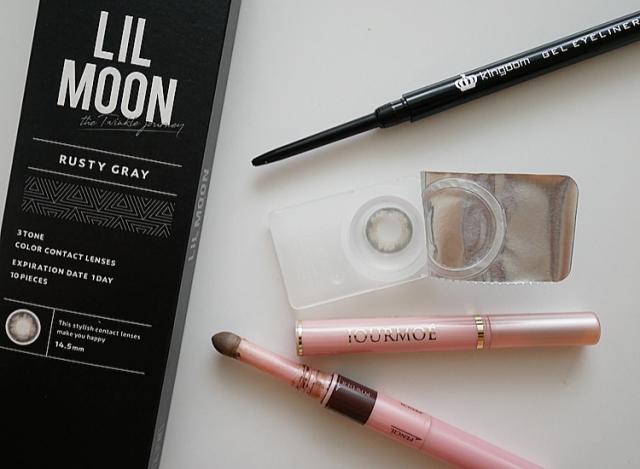 この目もとを作るためには、黒目の色素を薄くしてくれるカラーコンタクトレンズ『リルムーン ティービュー マリーゴールド』を使うと、装着するだけで簡単に黒目を透明感のあるベージュ系に落ち着かせることができます。