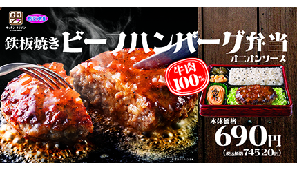 鉄板焼きビーフハンバーグ弁当、オリジン弁当とキッチンオリジンで期間限定販売