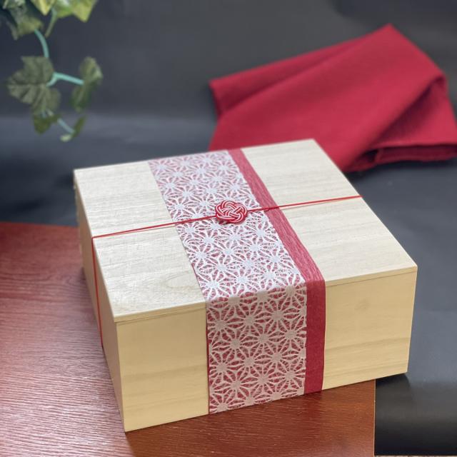 木製の化粧箱入なので、 贈り物にもおすすめです。