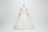 ウェディングドレスの新作は、裾までふんだんにあしらわれたレースが目を引く「ベッラファータ」。