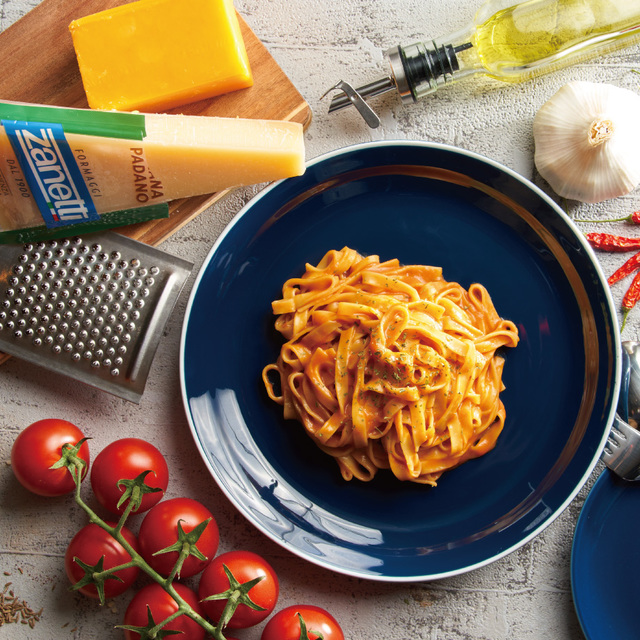 仕上げに、コクのあるゴーダチーズとレッドチェダーチーズをバランスよく配合した追いチーズを加え、乳化するよう混ぜ合わせたら、濃厚でクリーミーなモチモチ食感の極上〆生パスタが堪能できます。