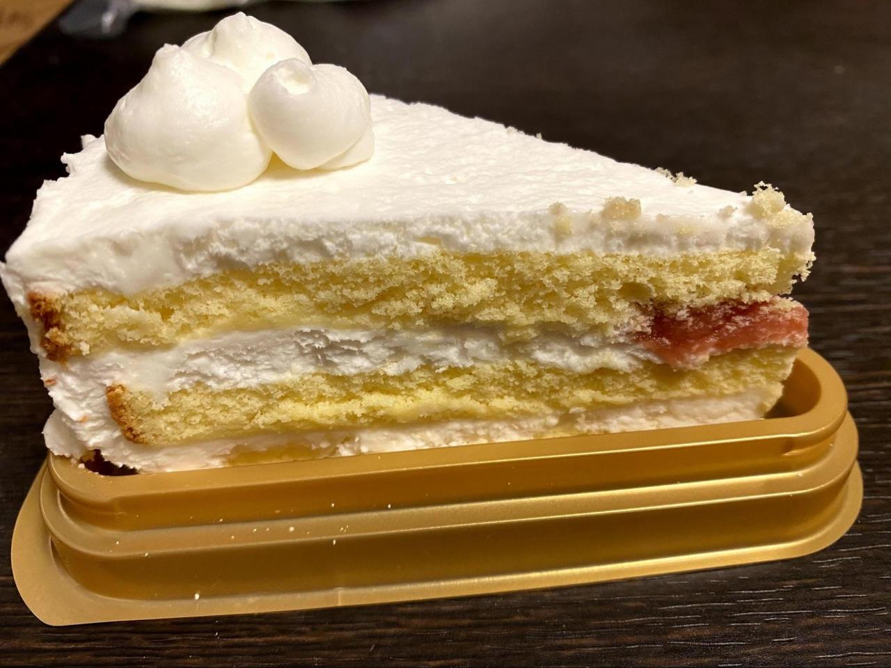 ショートケーキならではのいちごは上には乗っていませんが、中にいちごスライスが挟まれています。