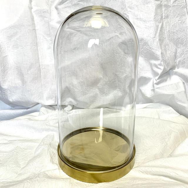 ゴールドのスタンドが付いているタイプのガラスドーム。おしゃれで高級感のあるデザインです。
