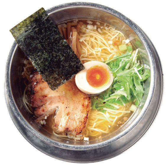 鶏ガラ、昆布、香味野菜などを9時間煮出したスープは、あっさりしつつもコク深い。ラーメンの上に香ばしい炙りチャーシューが添えられ食欲をそそる。この一杯目当てに行列ができる人気店。