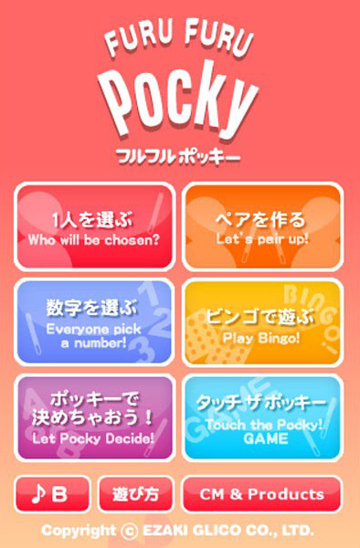 細長いポッキーの形を活かした、くじ引きゲームアプリ。