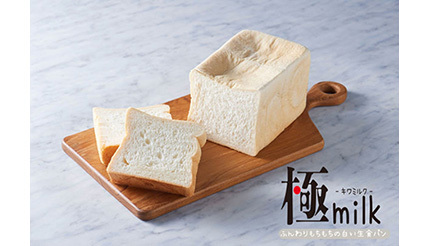 同店の生食パンは、耳まで柔らかく中は牛乳の風味が口いっぱいに広がるという。メニューは、「極milk -キワミルク-」(価格は972円)、「柔rich -フンワリッチ-」(同972円)、「玉nion -タマニオン-」(同1188円)、「黒chee -ブラッチー-」(同3110円)などとなる。