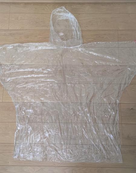【キャンドゥ】携帯用レインポンチョを広げるとこのような感じに