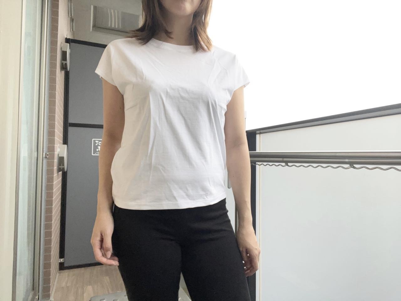 今回は、このスムースコットンフレンチスリーブTを実際に店舗で試着して購入しました。