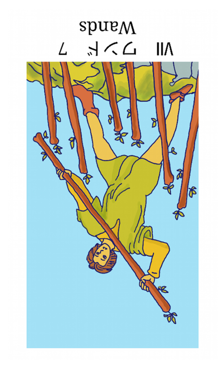 【A】のタロットカードは…『ワンドの7 逆位置』
