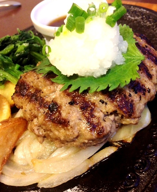 「うーん、しょう油の揺るぎない安定感。ハンバーグ自体の脂も軽いから、パクパクいけますね。挽き肉料理はいろいろな素材と合わせやすいんでしょうね。これは大葉と一緒に食べるのがベストでしょう」