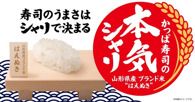この山形県の、オリジナル品種である「はえぬき」は、今のかっぱ寿司が考える“一番お寿司に合うシャリ”とのことです。