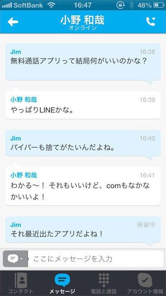 続いてはPCソフトでおなじみの「Skype」。