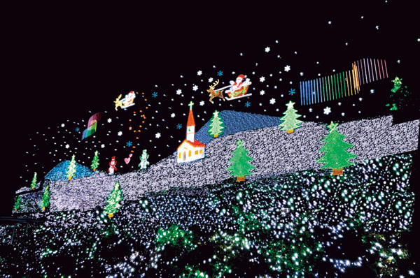大藤の電飾や光のピラミッド、高さ23mのクリスマスツリーなどが登場。日本夜景遺産にも認定登録されているスポットです。