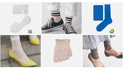 さまざまな場面でファッションを楽しめる靴下やレギンス、ストッキングなど130点以上の商品を用意し、ギフトラッピングにも対応している。