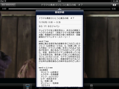 ナビゲーションバーの番組タイトルをタップすると、詳しい番組情報が表示されるので、番組表でわざわざ移動する必要もなく、情報も詳細です。