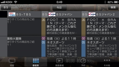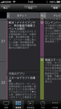 iPhone5でみた番組表(縦)
