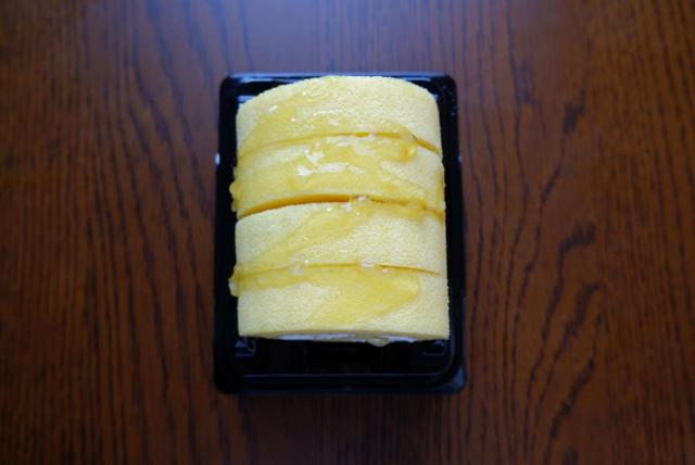 フタを開けてみると、ロールケーキの上部にはレモンピール入りのレモンソースがかかっているのが見えます。
