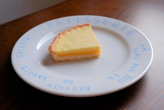 トップのレモンムースは酸味がきいていて、下のベイクドレモン生地は甘めなので、一緒に食べることで甘酸っぱい味わいを楽しめます。タルト生地は、ソフトでしっとりとした食感です。