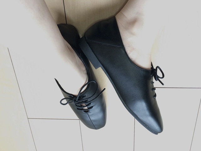 MUMU&Co.というブランドの、バレエシューズのような編み上げが特徴的なパンプスです。