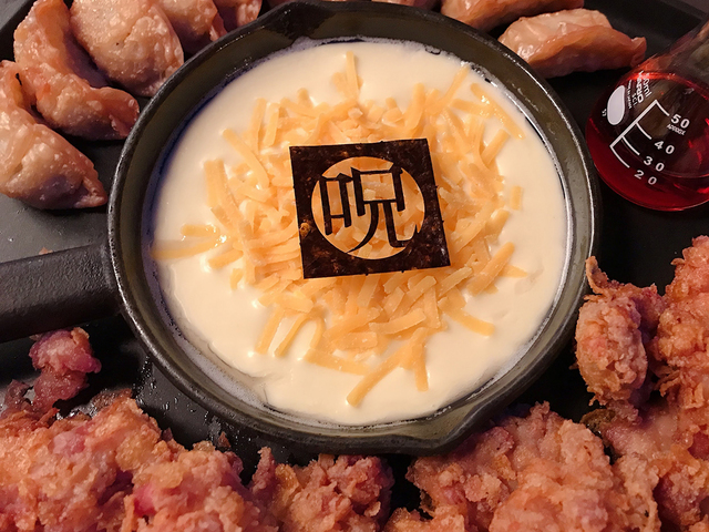 2021年6月22日(金)の、グランドメニュー変更に先行して販売されている「UFOチキン」は、唐揚げと揚げ餃子をとろとろで、クリーミーなチーズに付けながらいただくスタイル。