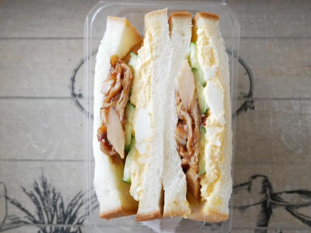 それに負けずと照り焼きチキンもたっぷり。きゅうりのスライスも、たまごと照り焼きチキンの間にすき間なく入っていて、パンの端から端まで具だくさんなんです。