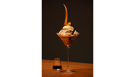 食べ進むうちに、チョコレートの氷やバニラアイスがショコラショーと溶け合い、香や味わいの変化を楽しめるほか、コーヒーゼリーのなめらかな舌触りと、ふんわりと削ったチョコレートのかき氷の異なる食感も堪能できる。