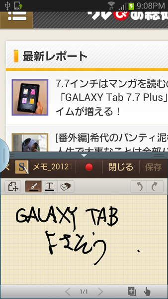 例えば、WebブラウザでWebページを見ながらメモをしたり、動画を見ながらTwitterを見たりメールを書いたり、といったことも可能となります。これは「GALAXY Note」にはなかった機能ですね。