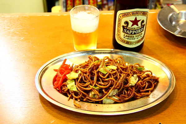 頼んでから火を通す焼きそばと、瓶ビールでひと休み。拡大画像表示