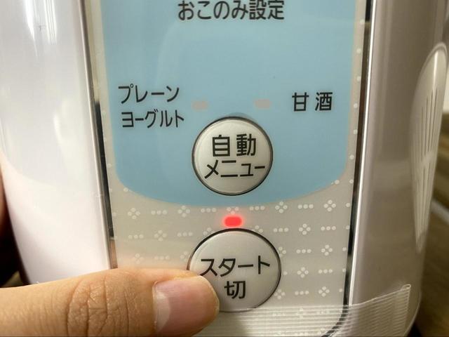 6. 容器をヨーグルトメーカーにセットし、温度を60度、時間を3時間に設定し、スタートスイッチを押す。