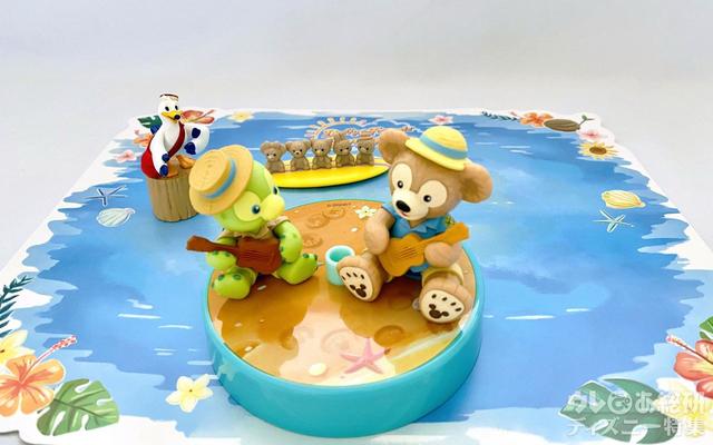 表は、ダッフィーたちが、お名前入りの自分の浮き輪からお顔を出しているところ。