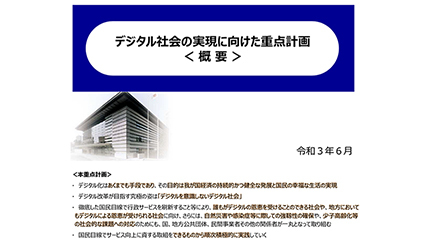 デジタル社会の実現に向けた重点計画は、2020年7月に閣議決定されたIT戦略(世界最先端デジタル国家創造宣言・官民データ活用推進基本計画)を全面的に改訂して策定するもので、今年9月のデジタル庁の創設を見据え、デジタル社会形成基本法に基づく重点計画を先取りする形で策定したものとなる。