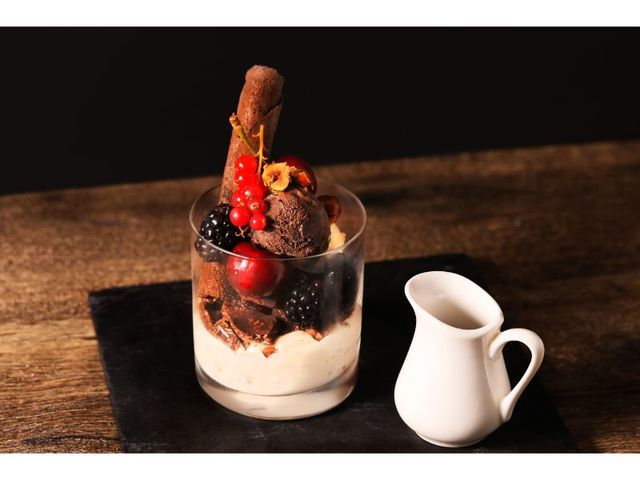 ■ベルギーチョコアイスとブラックベリーのショコラパフェ ーエスプレッソ香るアフォガードー 1450円(税込)