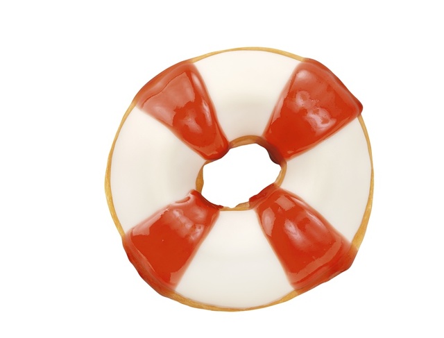 『スイカ スイム リング』は、ホワイトチョコをコーティングしたリングドーナツに、大きな浮き輪をイメージし、ジューシーなスイカナパージュで模様を描いたドーナツ。