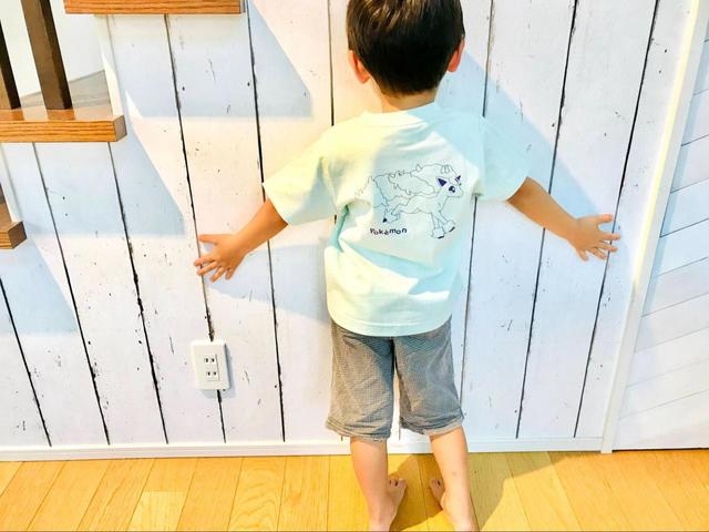 身長107cmで小柄な次男に110サイズを着てもらうと、ジャストサイズでした。