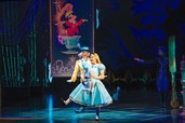 ポット夫人とチップに続き、金色のドレスを身にまとったベル、そしてアリスとマッドハッター(『ふしぎの国のアリス』)、メリー・ポピンズも登場し、ミッキーマウスとミニーマウスはこの豪華絢爛なティーパーティーを思いっきり楽しみます。