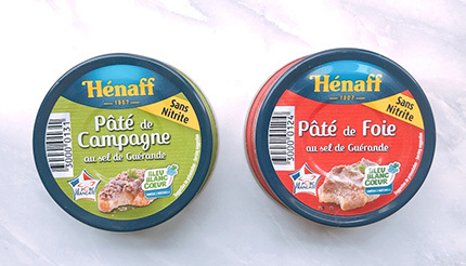 1907年、フランスのブルターニュ地方に設立された「エナフ」は、ポーク・パテを中心にフランスで人気の食品メーカー。フランス産ポークのみを使用するなど、こだわって作られた商品は世界中に多くのファンを持つ。気軽に本場フランスの味を楽しめる缶詰、今回は「レバーパテ」と「パテ・ド・カンパーニュ」を購入してみた。