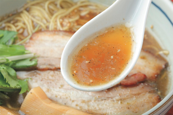 好きが高じて独学で学び、屋台から始まった店も9年目。無化調にこだわるなかで、「もっとインパクトを」と完成したのが「飛魚醤油麺」だ。ダブルスープにさらに沖の島産のトビウオを加え、味に厚みを出している。最高ランクの素材を惜しまず大量に使うため、その奥行きのある深いうま味は無化調とは思えないほど。